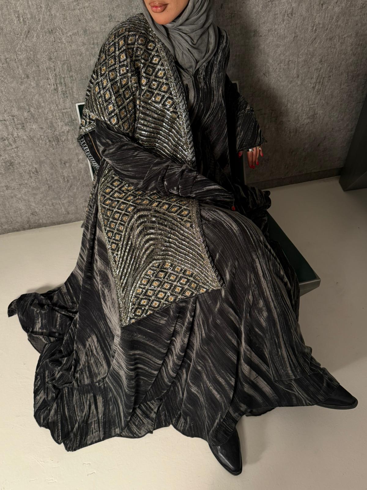 مخمل دبل كلوش + سكارف شك يدوي